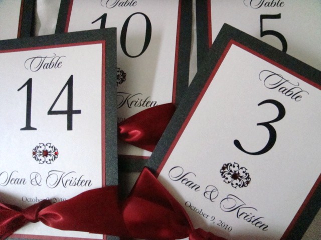 Here are some recent orders in red and black. For some reason, red was used a lot in weddings this month. Plus I'll be using crimson red in my own wedding this January, so maybe that's why I'm seeing red. I was messing around with some photos of table card orders from this month, and posted the photo below in a listing. :)